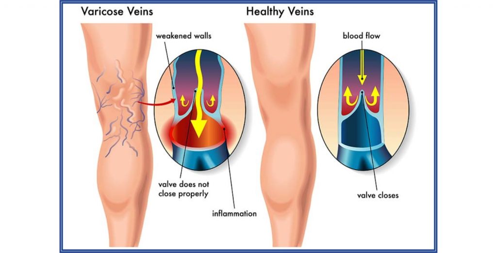 Your veins have one-way valves that keep the blood flowing toward your heart. If the valves are damaged or weakened, rather than flowing back towards your heart blood can back up and pool in your veins, causing them to swell. Veins that are enlarged and swollen enough to be seen are known as varicose veins. These twisted and bulging veins appear most commonly on legs, though they can appear anywhere on your body.